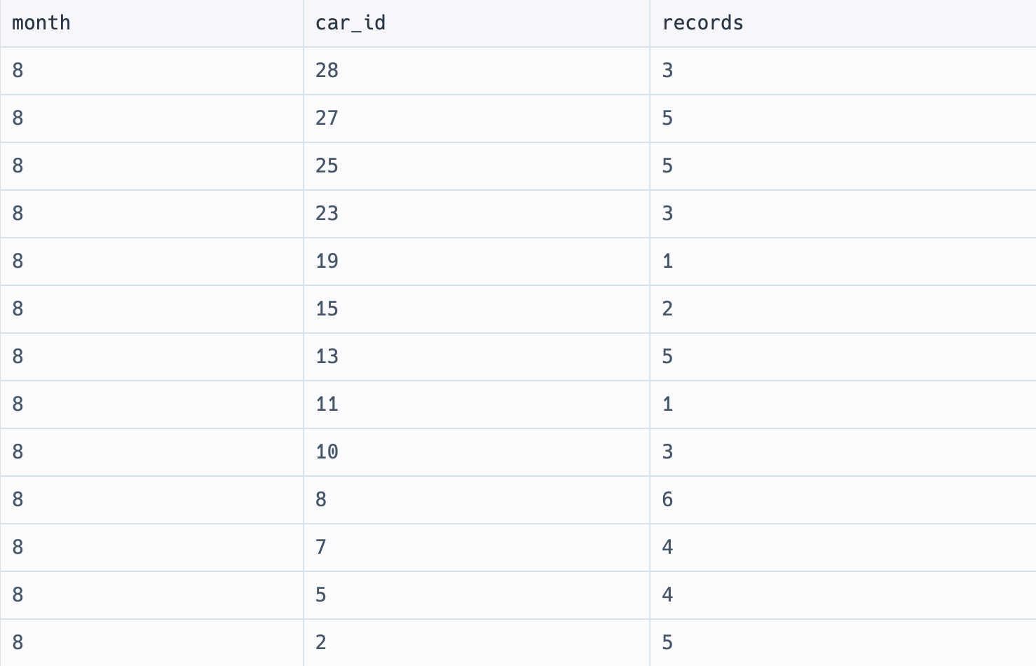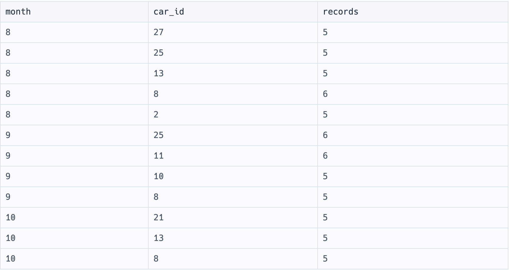 group by month, car_id