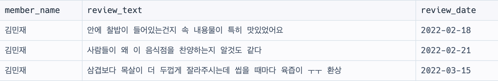 <식당의 리뷰 정보를 담은 REST_REVIEW 테이블>