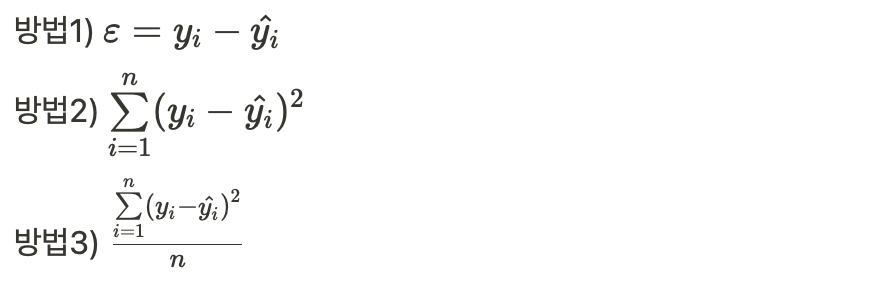 - 방법1) 에러 = 실제 데이터 - 예측 데이터 로 정의하기