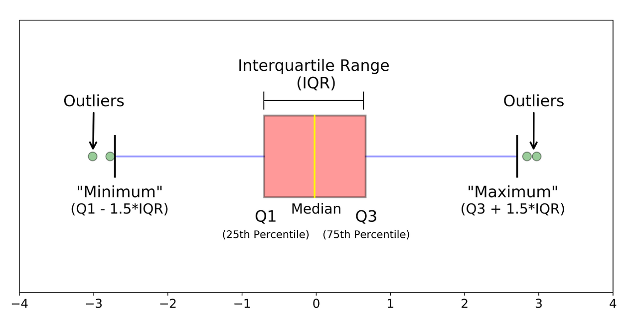 - 데이터가 정규분포를 따른다고 가정할 때, 평균에서 표준편차의 3배 이상 떨어진 값