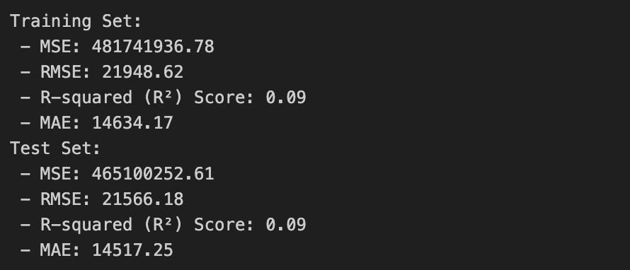 print(f" - MSE: {train_mse_ridge:.2f}")