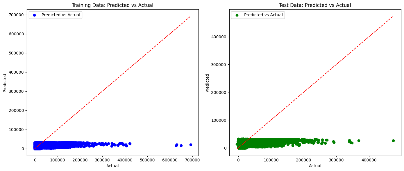 plt.title("Training Data: Predicted vs Actual")