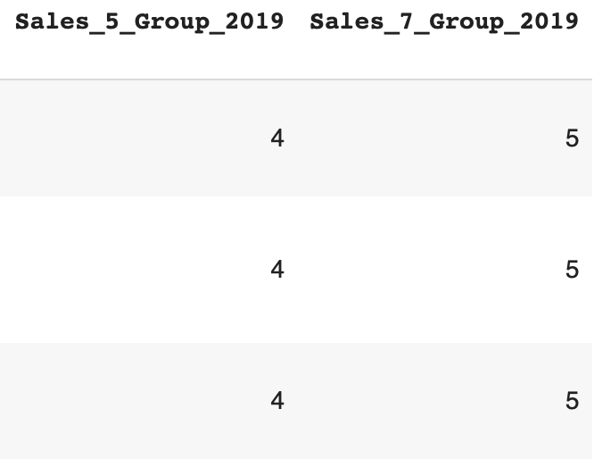 df = pd.merge(df, df_customer_sum_2019[['Custkey', 'Sales_3_Group_2019', 'Sales_5_Group_2019', 'Sales_7_Group_2019']], on='Custkey', how='left')