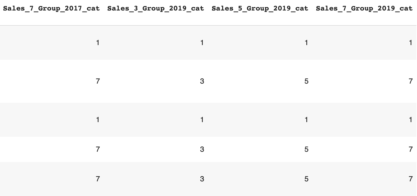 df = pd.merge(df, df_category_sum[['category', 'Sales_3_Group_cat', 'Sales_5_Group_cat', 'Sales_7_Group_cat']], on='category', how='left')