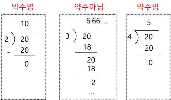 - 약수 : 어떤 정수를 나누어 떨어지게 하는 0이 아닌 수