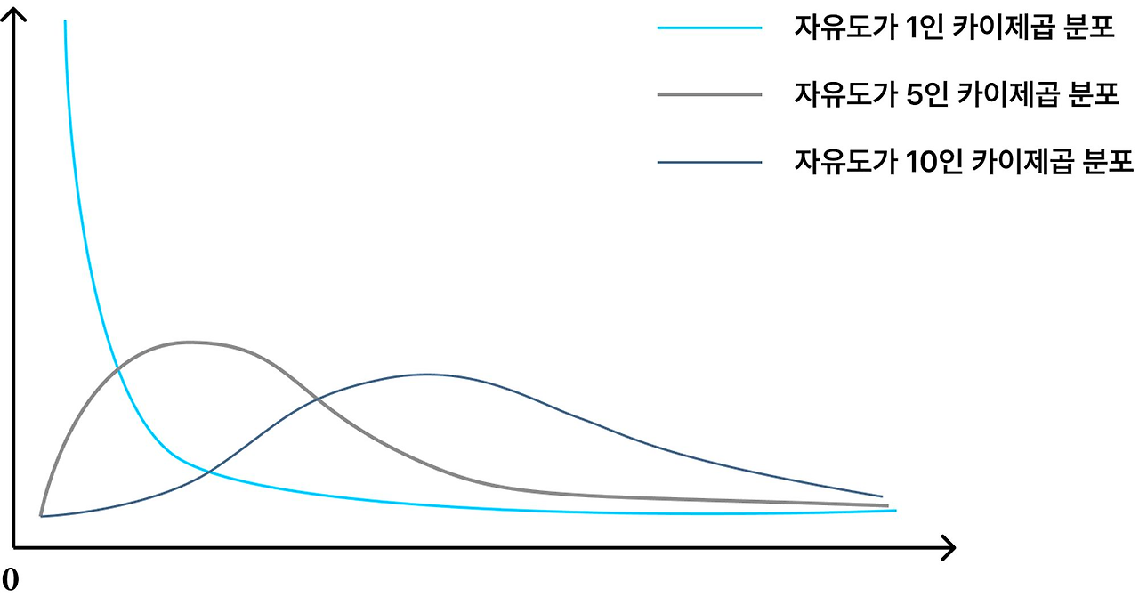 ▶ 카이제곱 분포 - 표준정규분포(=의 분산에 대한 분포)를 따르는 확률변수들의 제곱을 합한 분포