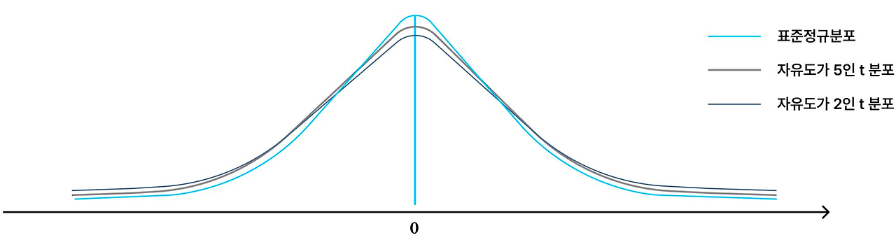 ▶ t-분포 - 통계적으로 표본으로부터 모집단의 평균에 대한 추정을 할 때 사용되는 분포